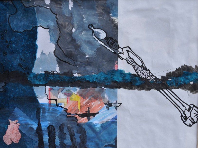 Im Kunstschalter Schemmerhofen enstand im Frühjahr 2022 diese Serie aus sechs Tafeln in Collage-Technik (je 70 x 100 cm) zum Thema Heimat, zusammen mit einem Text (pdf).